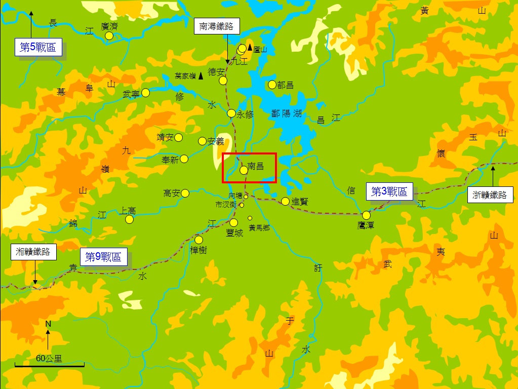 南昌古稱洪都、豫章,居贛北平原腹地,扼贛江、鄱陽湖要衝,為歷史名城,江南水都,江西省會。南昌居浙贛、湘贛、南潯鐵路交會點,又是國軍第3、9戰區「連絡線」上的樞紐,距離長江最近,直接威脅武漢日軍翼側,是後者亟欲奪取之戰略目標。