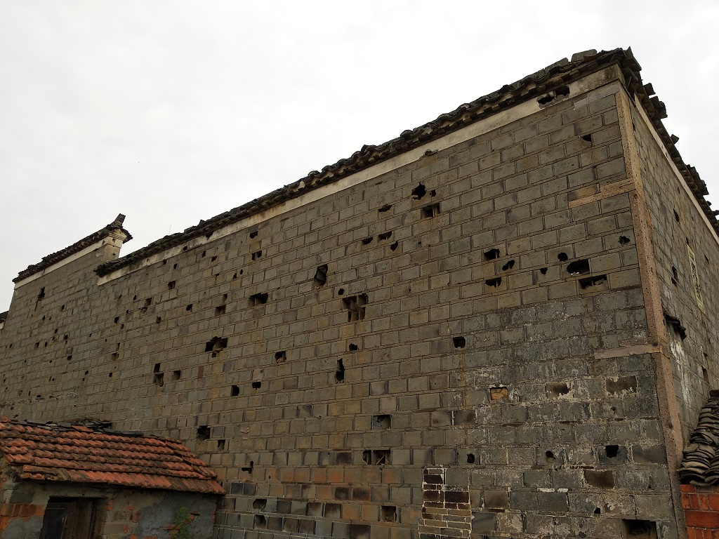 圖10. 南昌會戰國軍反擊階段,雙方激烈交火,於黃馬鄉上洛村「萬家祠堂」牆上留下的彈痕,仍清晰可見