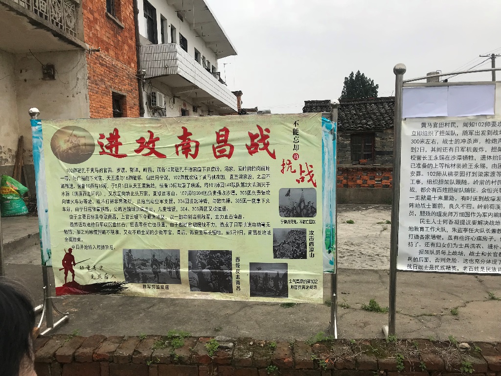 圖11.黃馬鄉上洛村於「萬家祠堂」旁佈置,有關「南昌會戰」的看板