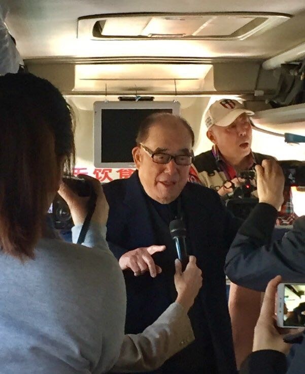 圖4. 2018年4月16日,郝先生在大巴上講述「浙贛會戰」日軍第11軍沿浙贛鐵路向東進攻之狀