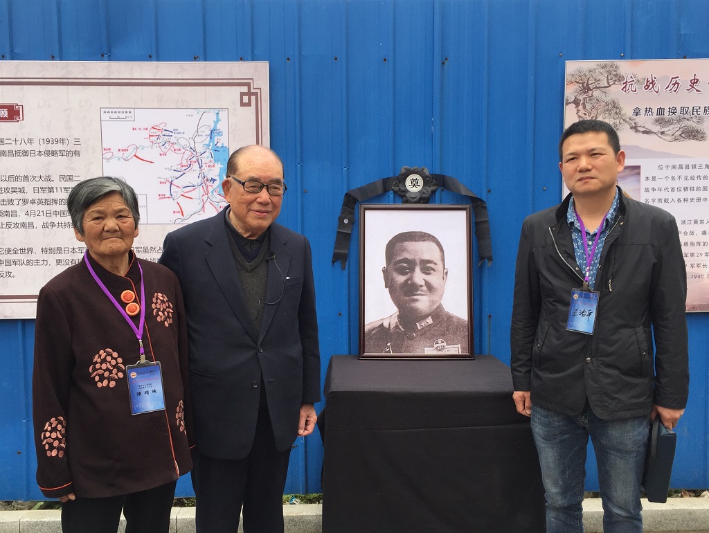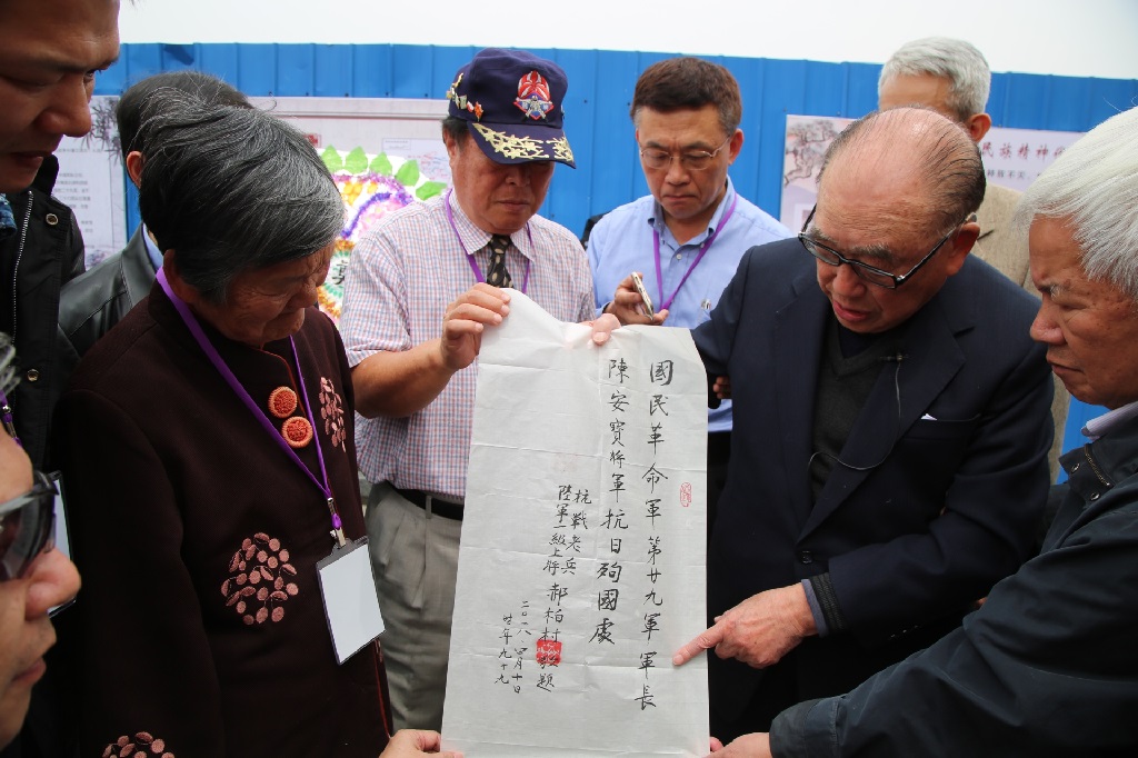 這一次我來南昌,除了查看「南昌會戰」與「浙贛會戰」的戰場外,最主要的目的,就是到第29軍陳安寶將軍殉國處拜祭。陳軍長殉國處周邊現在已蓋起了大樓,他的女兒、87歲的陳靖殊與外孫王治平,也由浙江老家來到現場,我把宣紙所寫的「國民革命軍第二十九軍軍長陳安寶將軍抗日殉國處」毛筆大字,交給了陳女士。