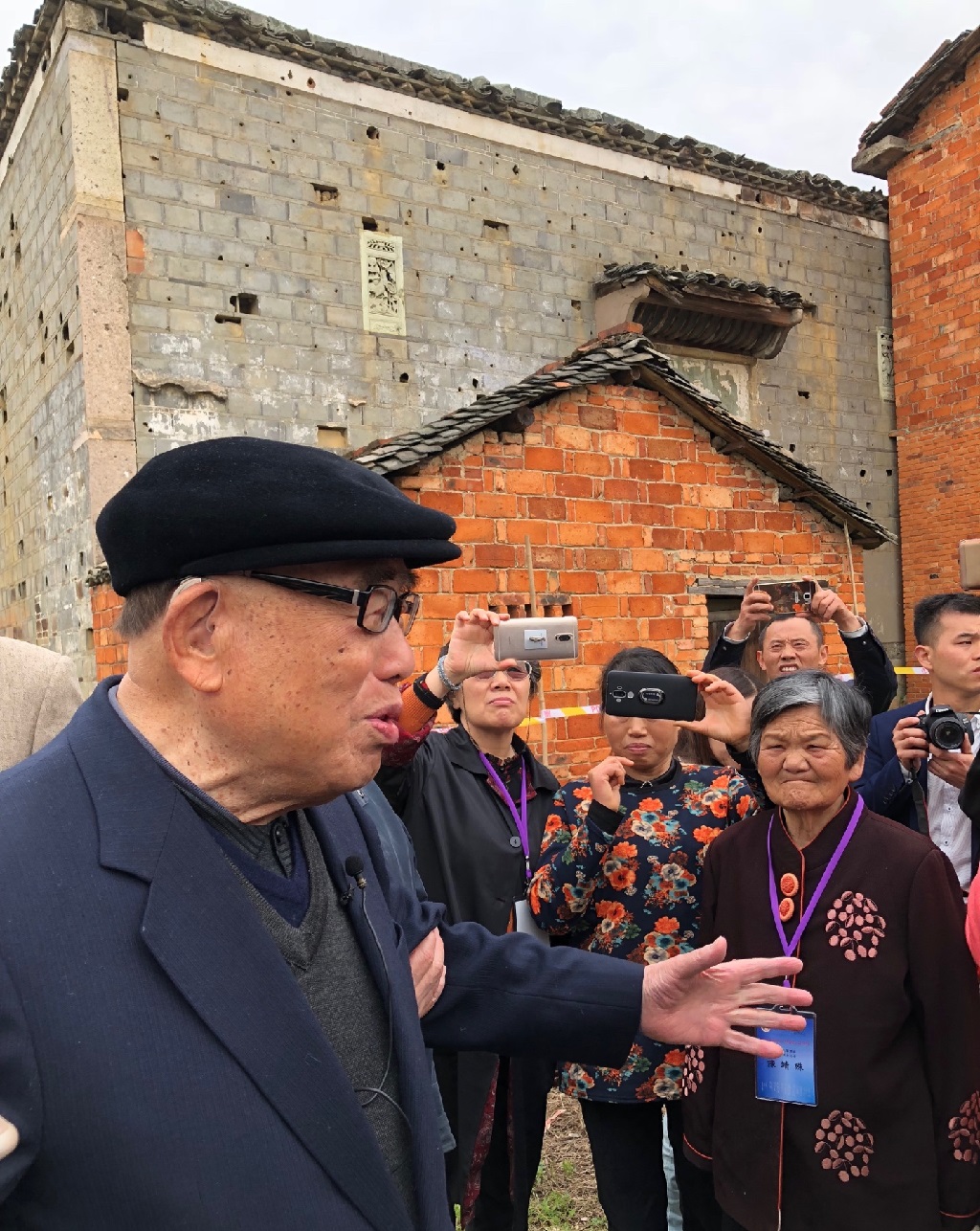 圖9. 2018年4月16日,郝先生在萬家祠堂講述國軍反攻南昌之作戰狀況,右一為陳安寶軍長之女
