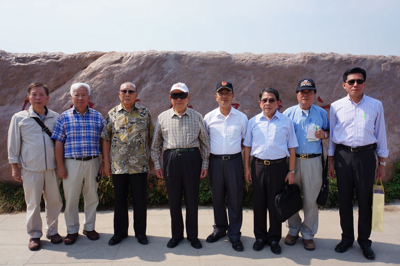 圖9. 2014年7月14日,郝先生與隨行人員攝於「花園口事件記事廣場」勒石前(左起:傅應川、沈國樑、周仲南、郝先生、胡筑生、黃炳麟、何世同、陳振東)