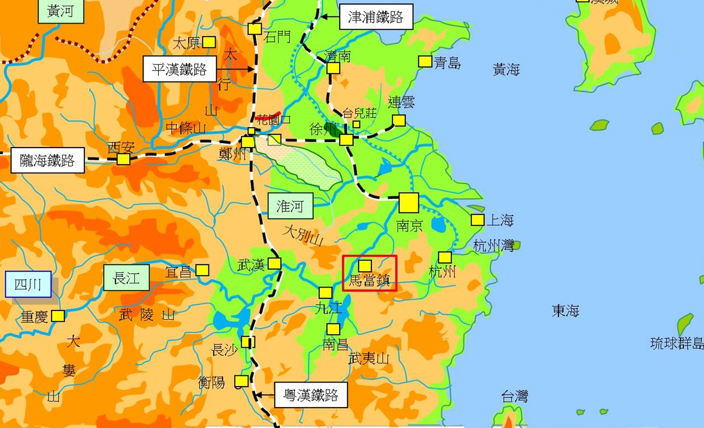 1937 年 12 月,國府軍委會命撤離山東青島之海軍第3艦隊與陸戰隊移駐武昌,納編從江陰轉進的海軍砲隊為「江防要塞守備司令部」,負責防守沿江諸要塞。其中,馬當要塞於1938年3月開始進行火砲架設與防護工事,共部署各類火砲13門及附屬設備多種。(如圖3示意)。
