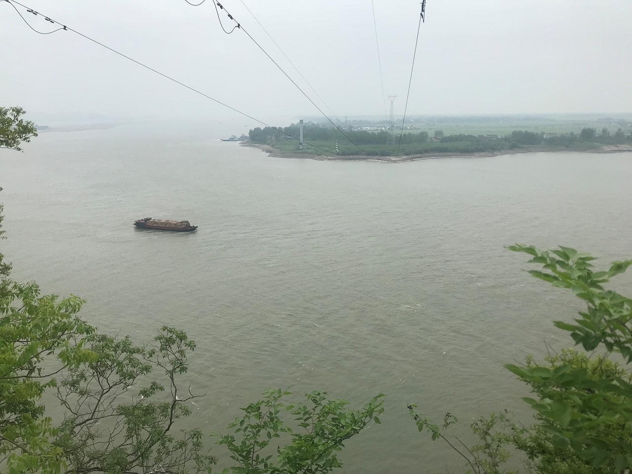 圖3. 從馬當要塞俯瞰長江水道,貨輪正在下方通過