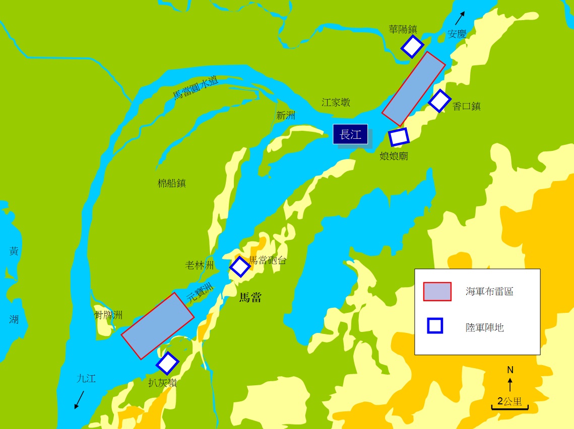 海軍大約花了半年的時間,經營江面沉船、佈雷、建立攔河壩式阻塞線作業,加上附近地形複雜,易守難攻,應能固守相當時間。當時蔣委員長要馬當守一個月,但很不幸只守了三天,所以就把那個指揮官槍斃了。