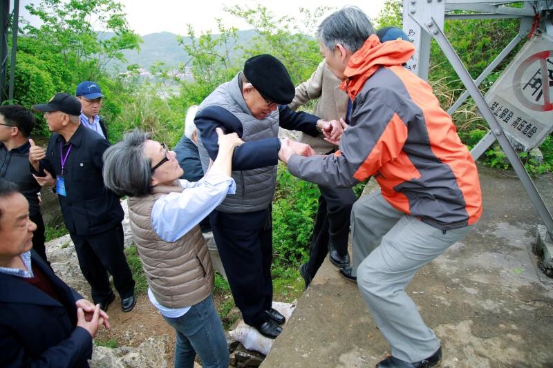 圖5. 2018年4月14日,郝先生一階階登上馬當礮台高地