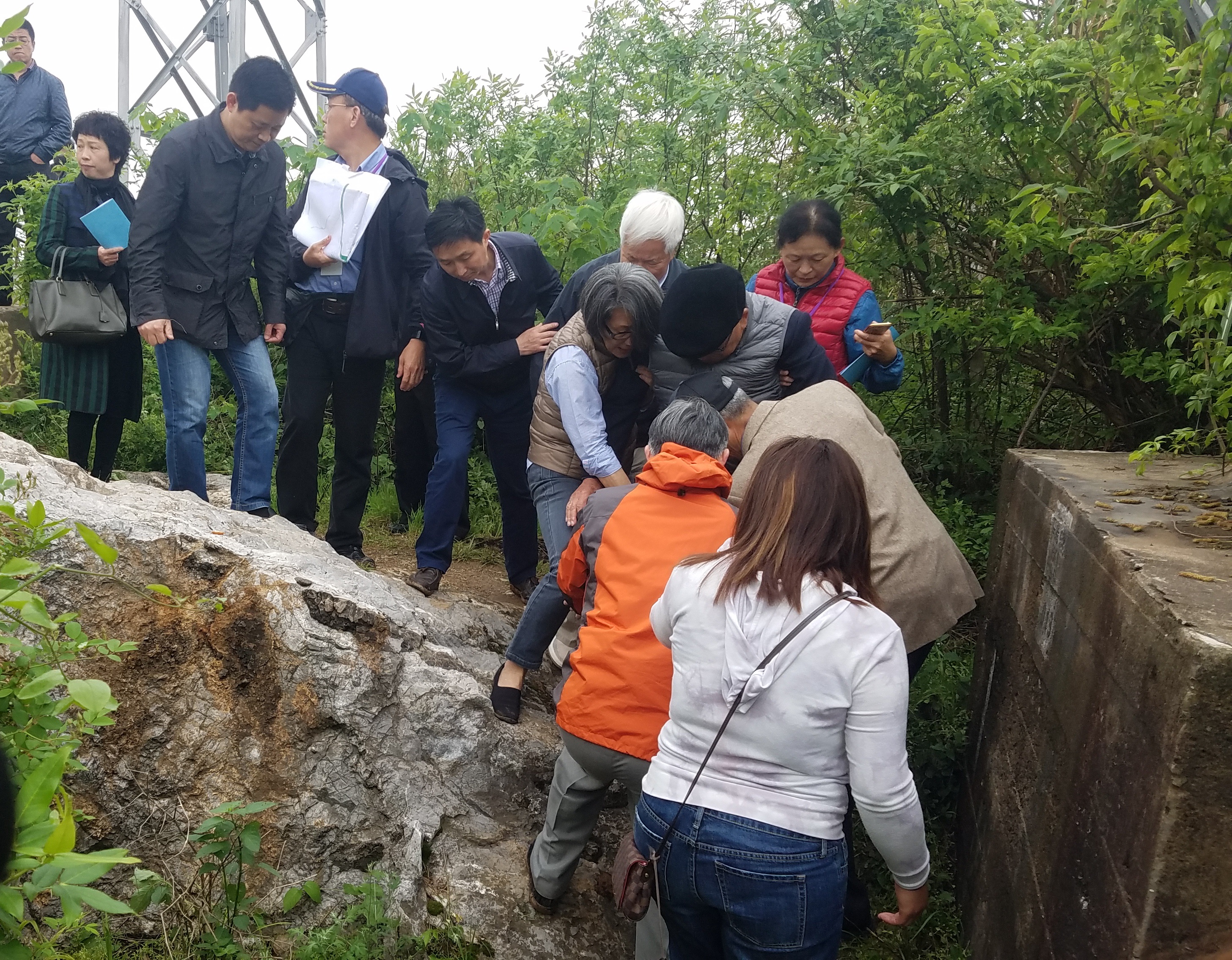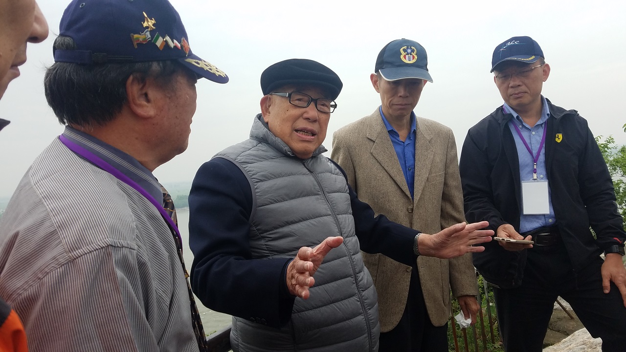 圖10. 2018年4月14日,郝先生在馬當要塞最高處與隨行人員合影(左起:倪孟安、萬吉祥、張自治、陳廷寵、郝先生、何世同、沈國樑、宋啓成),其後為長江