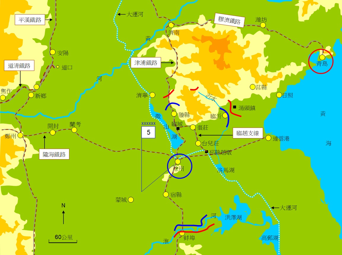 1937 年 12 月下旬,日本華北方面軍第10 師團沿津浦鐵路南下,渡黃河;23日,山東省主席、兼第5戰區副司令長官及第3集團軍總司令韓復榘,不戰而放棄濟南與泰山,日軍因而長驅直入迄沂水至濟寧一線(態勢如圖2示意)。