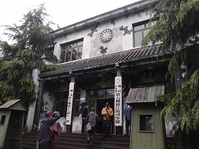 2017年11月1日接近中午時分,我們來到江陰市北郊的黃山,進入「江陰濱江要塞旅遊區」,進入名曰「望江樓」的展館大樓,再搭乘電梯,登上頂部陽台。我笑著跟園區導覽人員說,我已99歲,可能是自己走上來年紀最大的人。